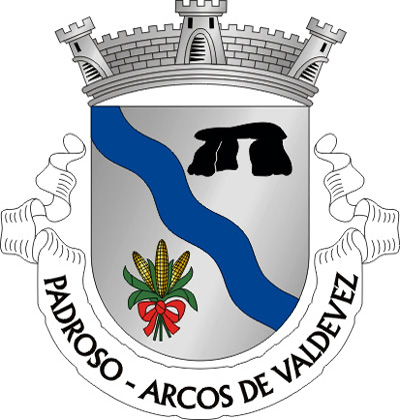 | Armas Escudo de prata, banda ondada de azul entre uma anta arqueológica de negro e três espigas de milho de ouro, folhadas de verde e atadas de vermelho. Coroa mural de prata de três torres. Listel branco com a legenda a negro em maiúsculas : “ PADROSO – ARCOS DE VALDEVEZ “. |